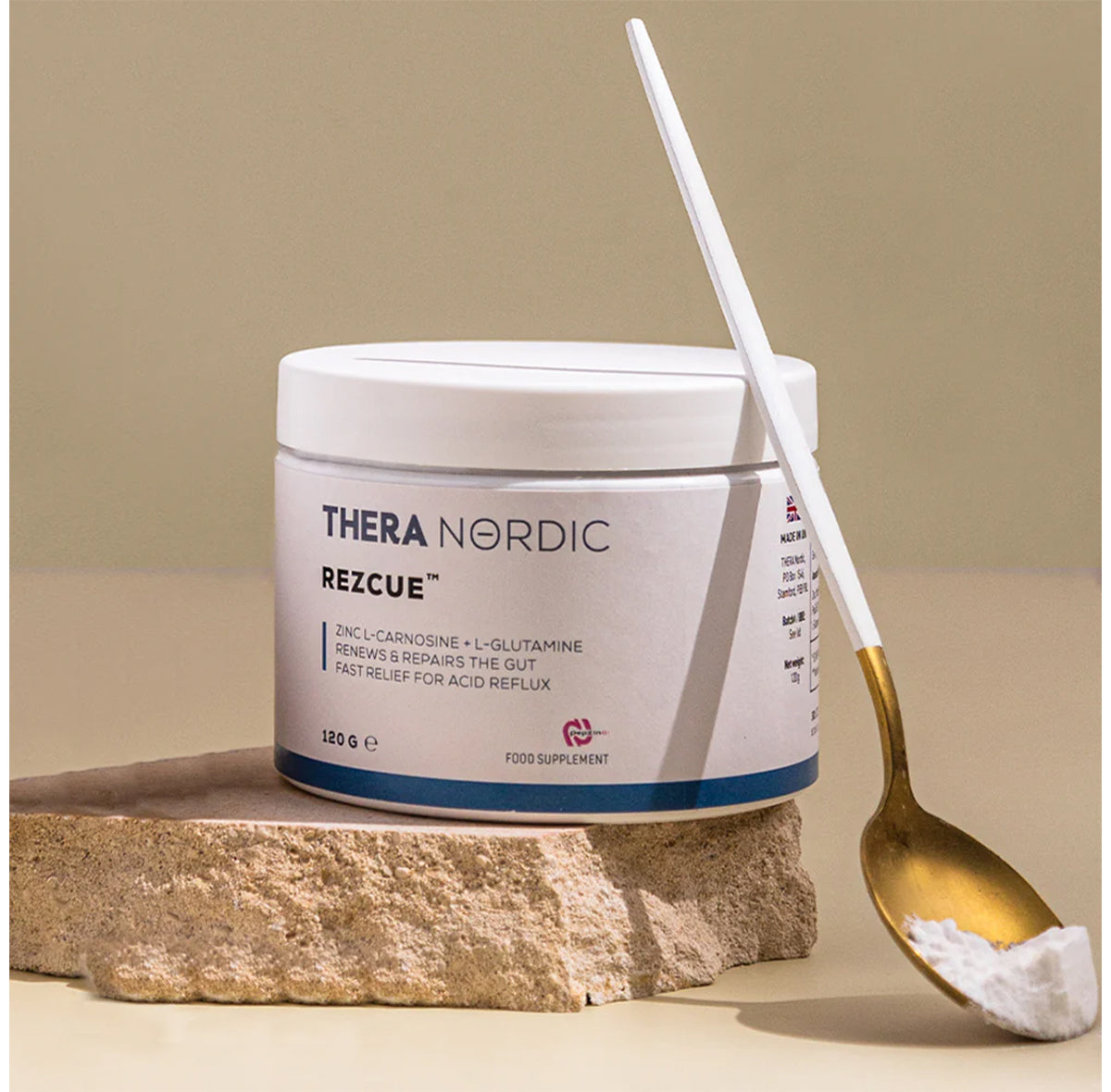 Cinko karnozinas yra viena iš pagrindinių REZCUE sudedamųjų dalių, todėl norime atskleisti, kaip jis veikia patekęs į žarnyną. Cinko karnozinas yra selektyvaus pobūdžio, tai reiškia, kad jis suranda tas sritis, kuriose yra labiausiai reikalingas. Cinko karnozinas yra sudarytas iš L-karnozino ir cinko. Jų cheminis ryšys nėra labai stiprus, ir, kaip netrukus suprasime, tai yra svarbi savybė. Patekęs į žarnyną cinko karnozinas jungiasi su baltymu albuminu. Kai cinko karnozino molekulė pasiekia albuminą, dėl silpno cheminio ryšio su cinku, ji pakeičia cinką į albuminą. Laisvieji cinko jonai išleidžiami į audinį. Tuo tarpu L-karnozinas lieka šioje srityje ir veikdamas kaip antioksidantas gali apsaugoti ląsteles nuo oksidacinės žalos. Įrodyta, kad cinko karnozinas gali veikti audinius iki šešių valandų, kol jis natūraliai pasisavinamas organizme kaip maistinė medžiaga.