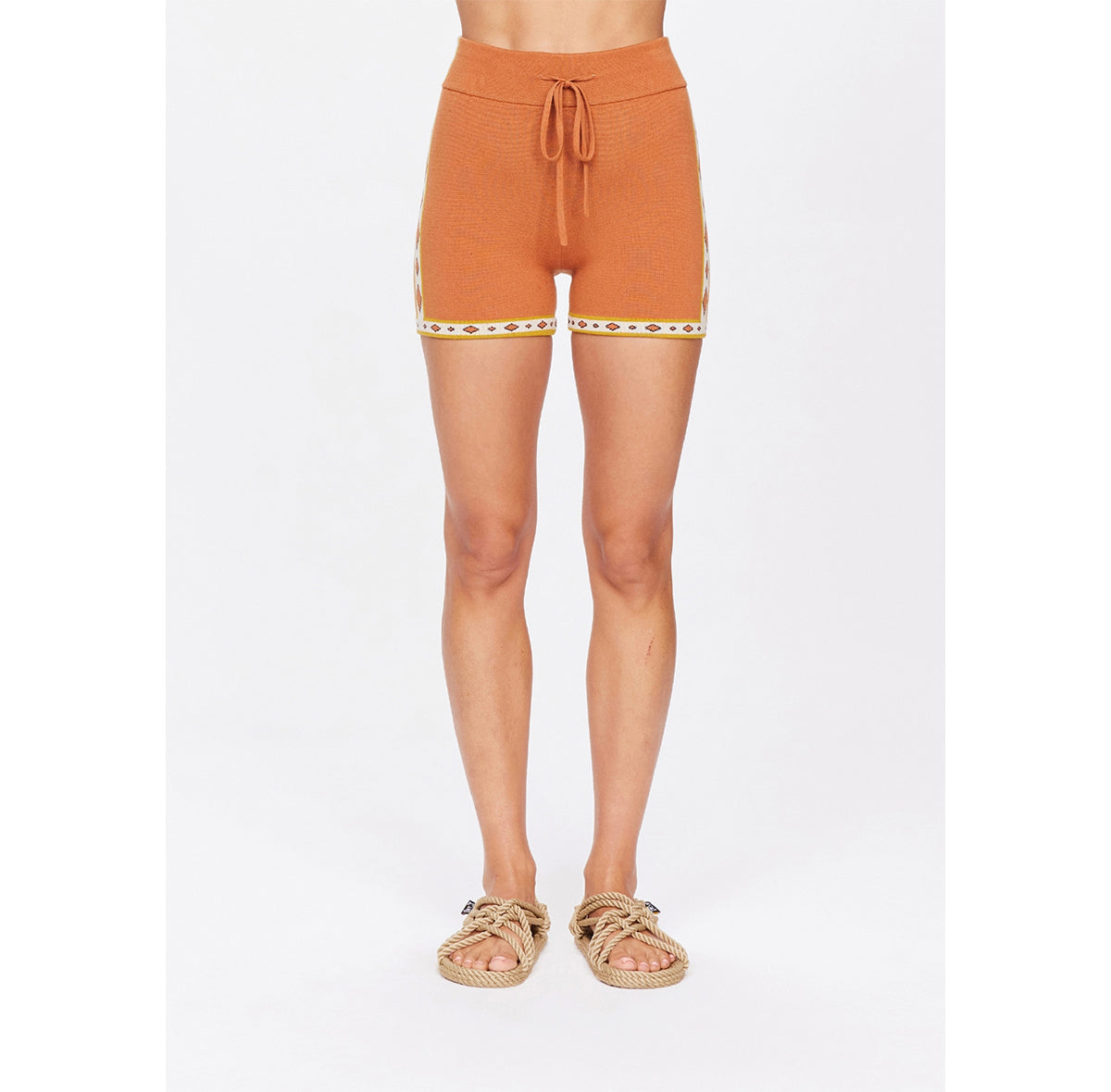 - Organinės megztos medvilnės, rudos „chai” spalvos laisvalaikio šortai